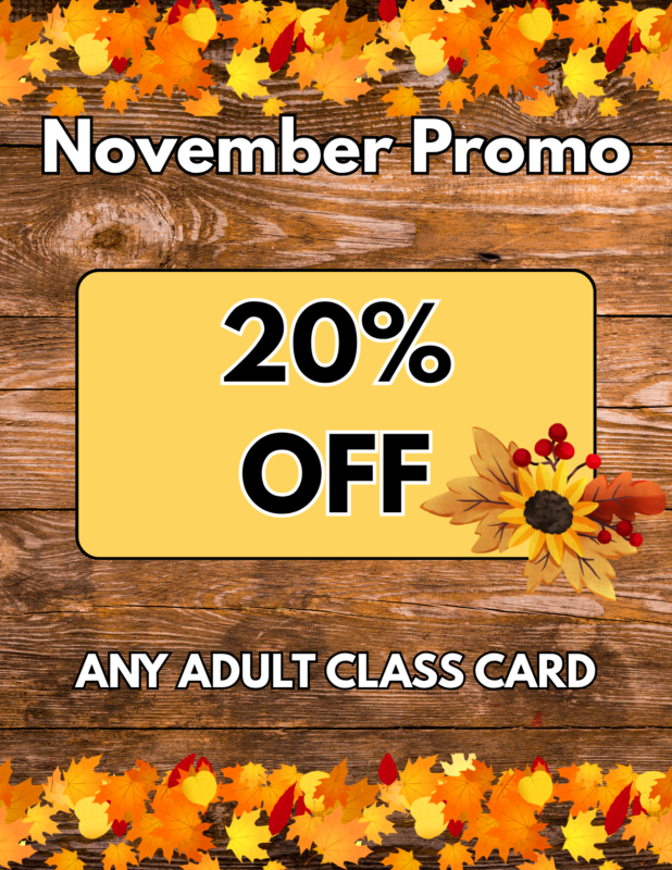 Throughout the year, our dance studio offers special opportunities and promotions that you won’t want to miss out on. Be sure to check this page from time to time, and maybe you can catch a discount on one of our adult dance classes.
